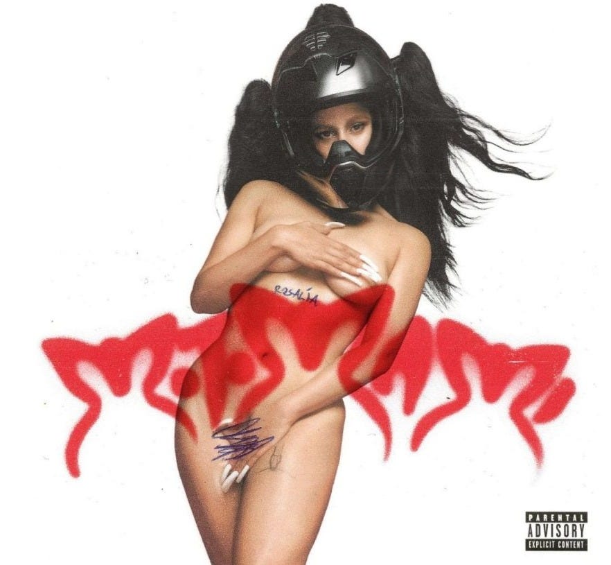 1- La portada, molt icònica i memejable, ok, és un horror. Com si davant d’un briefing impossible (Rosalía ha de sortir sexy, però urbana; maquinal, però carnal; reconeixible, però semi-anònima; angelical i desvergonyida...) haguessin tirat pel camí del mig: “Doncs ho fotem tot a dins i a cagar”.